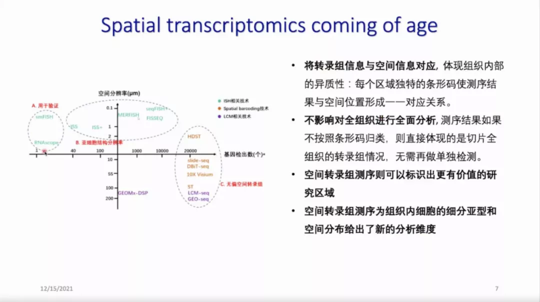 在简要介绍空间转录组的技术步骤后,他向我们展示了ST数据,并且分享了一些分析空间转录组数据的工具。