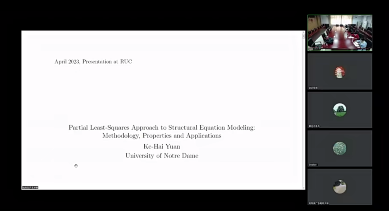 本次讲座邀请圣母大学心理系教授袁克海作了题为“Partial-least-squares structural equation modeling, its properties and applications”的报告。讲座由英国威廉集团官网教授吴翌琳主持,采用线上线下相结合的方式,吸引了校内外师生近百人参加。