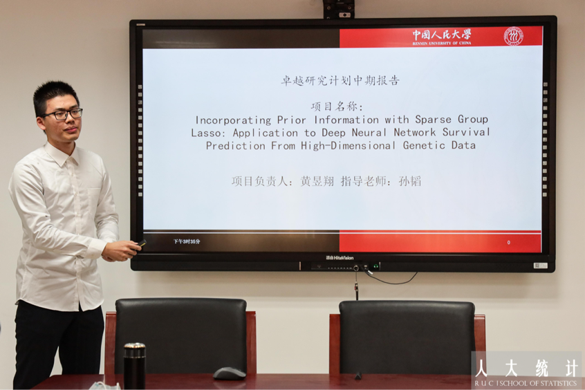 本期卓越研究计划共有11个项目获得立项,项目研究问题涉及深度学习、数据挖掘、风险管理等多个领域。经过近四个月的探索研究,各项目都取得了初步进展,按照卓越研究计划的考核要求,进行中期研究成果汇报。各项目汇报人从研究背景、主要创新点、数据收集情况、模型方法、阶段性成果、问题反思、下一步计划等多个方面进行展示和汇报。