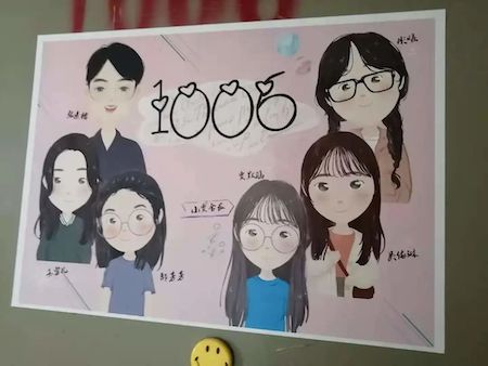 1006寝室拥有自己独特的宿舍文化,创建并运营了寝室公众号,在其中记录生活点滴,将快乐和感动无限地延续下去。寝室成员在寝室门后建立照片墙,其上时时增加新生舞会、生日聚餐、联谊寝建交等具有纪念意义的合影,再配上每个人三言两语的心情感悟。每次开关门时,看见前日的笑脸,又期盼着今日即将开启的新生活。