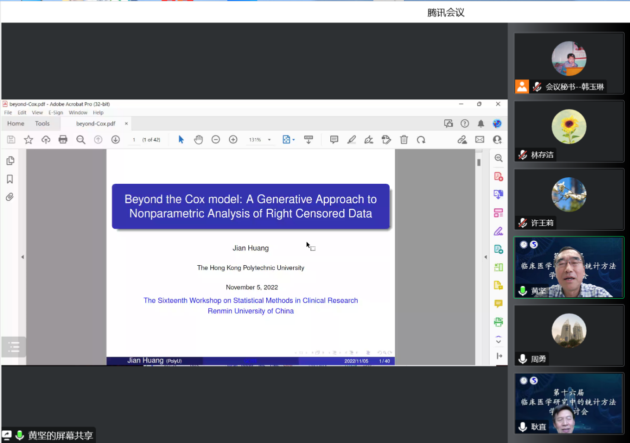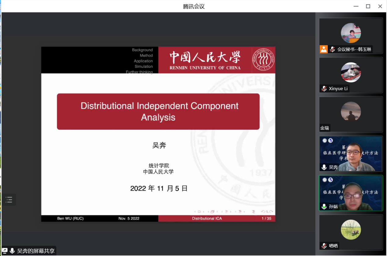 2022年11月5日,第十六届临床医学研究中的统计方法学术研讨会成功举办。本届研讨会由英国威廉希尔公司应用统计科学研究中心、北京生物医学统计与数据管理研究会、中国现场统计研究会生物统计分会、临床流行病学北京市重点实验室主办,英国威廉集团官网生物统计与流行病学系、南京医科大学公共卫生公司生物统计系承办,为响应疫情防控要求,采用腾讯会议的形式。来自全国各高校、医院、企业界的300余位专家学者和员工代表参加了会议。