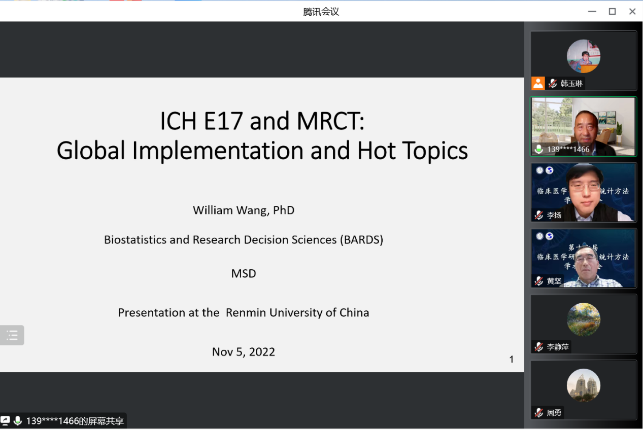 美国默克研究实验室(MRL)生物统计和科学决策部执行总监王武保教授的报告主题是:ICH E17 and MRCT:Global Implementation and Hot Topics。他介绍了为多区域药物临床试验设计所提出的一般原则(ICH-E17)的发展历程与该指南在全球实施的调查中的重要发现。同时,他表示ICH-E17该指南在全球应用方面存在很多热点问题,值得更多的探索和研究。
