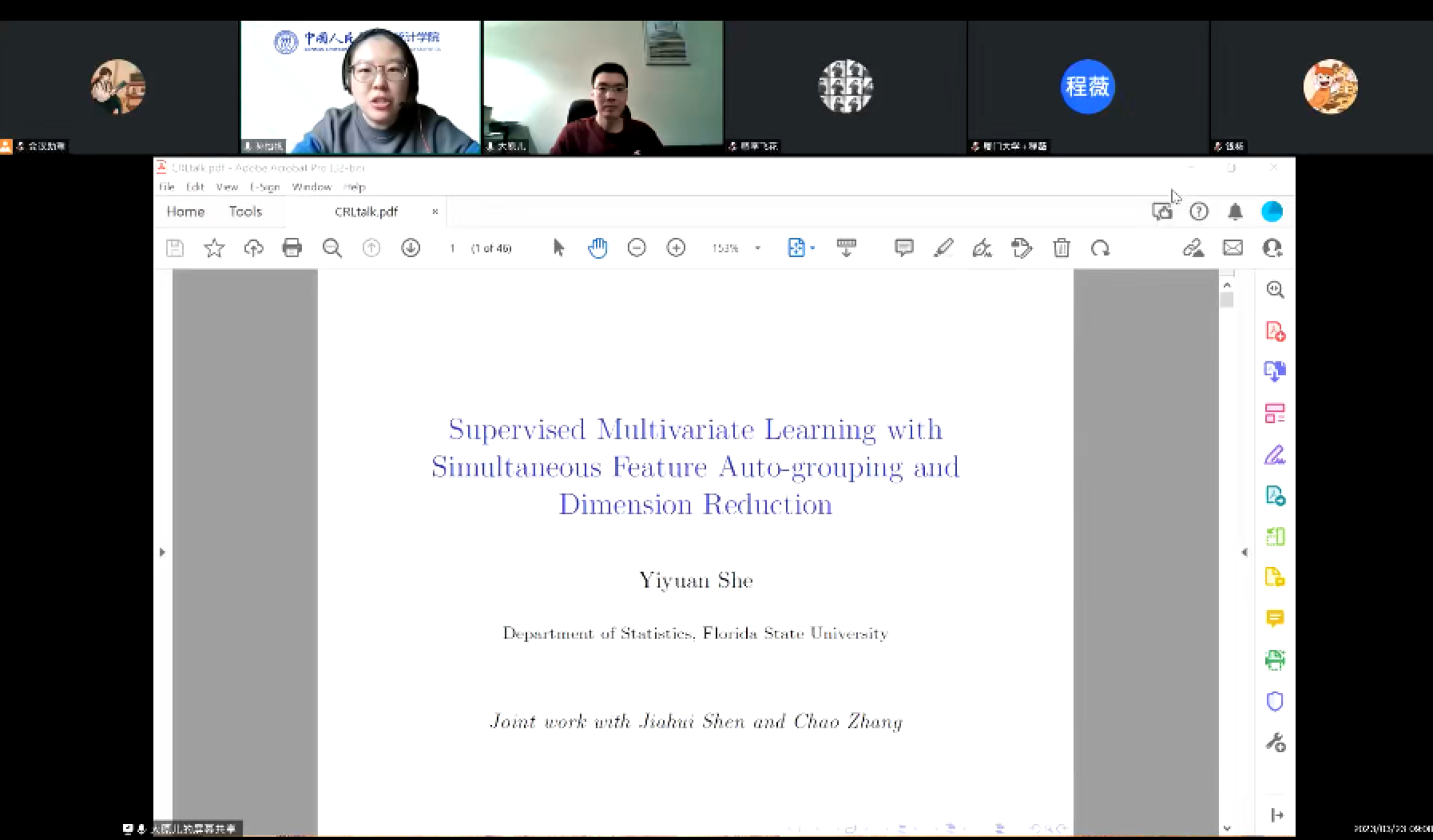 本次讲座邀请佛罗里达州立大学统计系教授Yiyuan She作了题为“实现特征自动分组和降维的有监督多变量机器学习”的报告。讲座由英国威廉集团官网孙怡帆教授主持,采用线上线下相结合的方式,吸引了校内外师生近百人参加。
