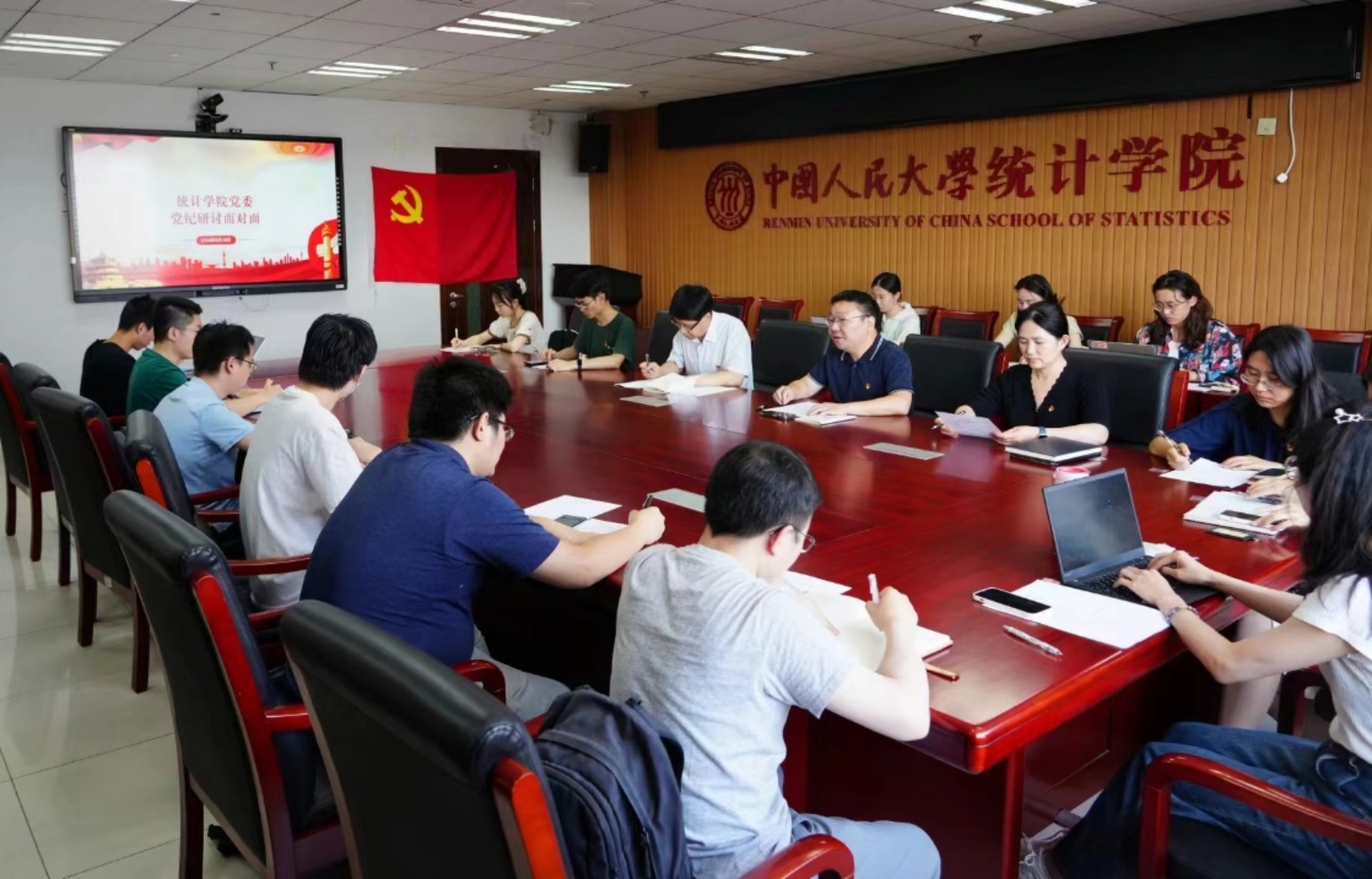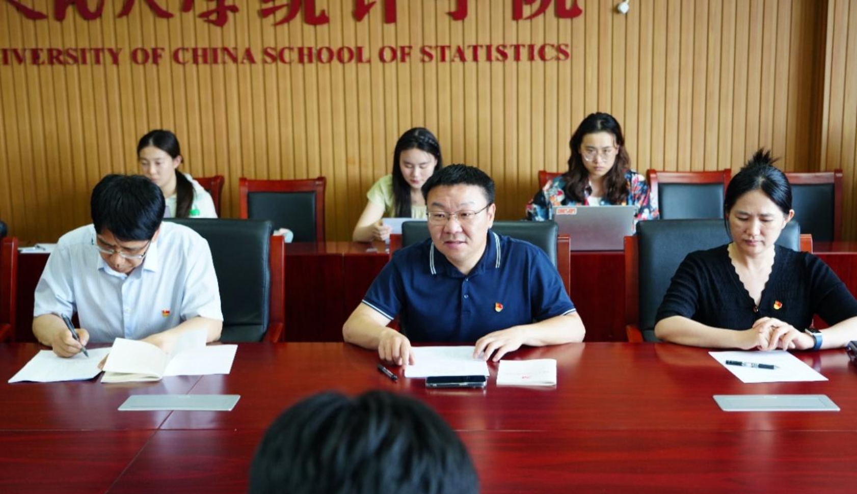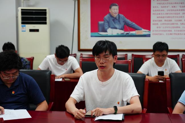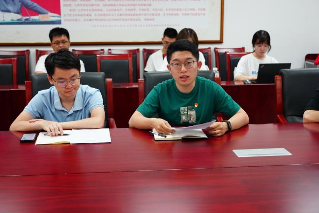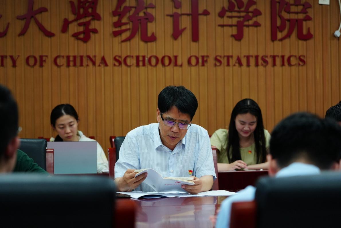 在圆桌讨论环节,2023级专硕2班党支部书记宋琳、2022级专硕2班党支部书记谢梦智、统计与大数据研究院2020级研究生党支部书记施昊晟依次发言,分享交流党纪学习体会及支部的党纪学习经验。