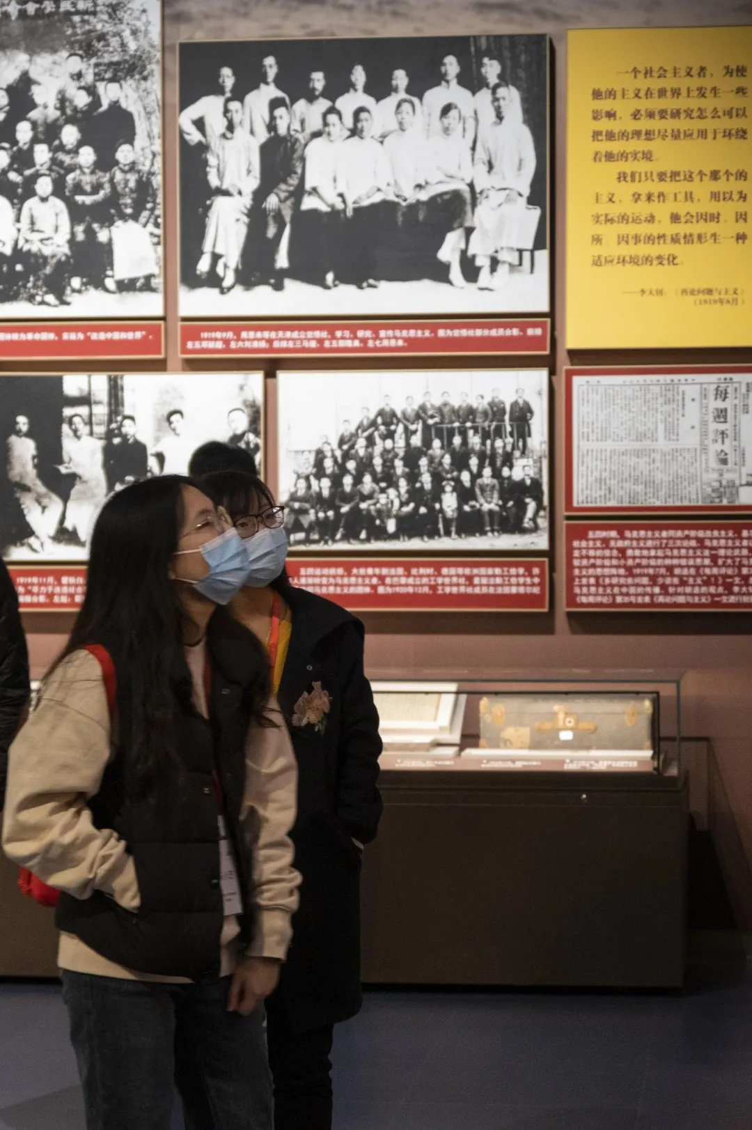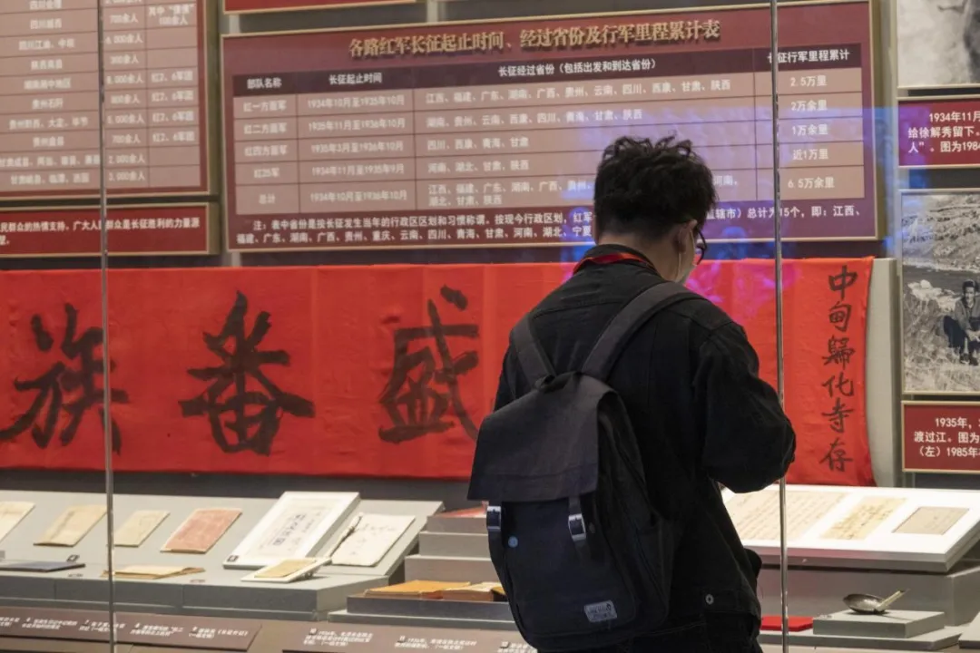 首展“不忘初心牢记使命——中国共产党历史展览”以“不忘初心、牢记使命”为主题,精心设计了“建立中国共产党,夺取新民主主义革命伟大胜利”、“成立中华人民共和国,进行社会主义革命和建设”、“实行改革开放,开创和发展中国特色社会主义”、“推进中国特色社会主义进入新时代,全面建成小康社会,开启全面建设社会主义现代化国家新征程”四个部分。同学们沿着展览精心设置的路线参观,“站起来、富起来、强起来”的历史脉络逐渐清晰,“为人民谋幸福,为民族谋复兴”的初心与使命愈发深刻。