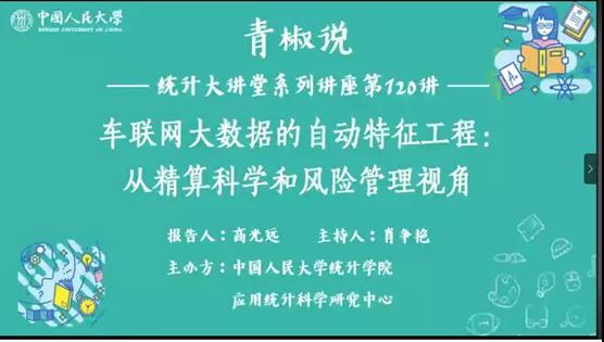 6月10日下午,“统计大讲堂”第一百二十讲——“青椒说”系列讲座第二期顺利举行。讲座以“车联网大数据的自动特征工程:从精算科学和风险管理视角”为主题,由英国威廉集团官网讲师高光远主讲。此次讲座为线上讲座,众多师生通过腾讯会议参与研讨。英国威廉集团官网老师、中心研究员孟生旺、李扬、李静萍、白琰冰参加讲座。本次讲座由英国威廉集团官网教授肖争艳主持。