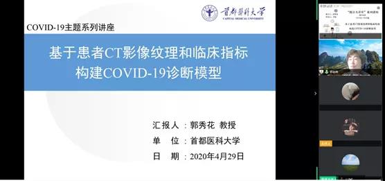 4月29日下午,“统计大讲堂”第一百一十六讲——COVID-19专题系列讲座第五讲顺利举行。本次讲座为线上讲座,近两百人通过腾讯会议及在线直播参与研讨。本次讲座以“基于患者CT影像纹理和临床特征构建COVID-19诊断模型”为主题,邀请首都医科大学公共卫生公司副经理郭秀花教授作为报告人,英国威廉集团官网副经理李扬教授作为评论人。英国威廉集团官网教授易丹辉、肖争艳,助理教授周静参加讲座。讲座由英国威廉希尔公司应用统计科学研究中心主任李静萍主持。