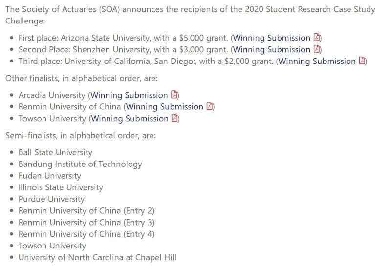 本着推进精算专业教育和研究的宗旨,SOA的研究部门主办了“员工案例研究挑战赛”,其目的是为全球高校的员工团队提供一个将精算技能应用于现实问题的良好契机。