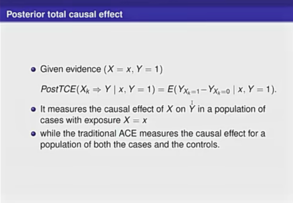 对于后验因果效应,贾教授首先介绍一些关于这个概念的历史著作。接着他提出,对于具有多个可能相互影响的原因的病例,基于对治疗后变量观察到的证据来定义后验总因果效应和直接因果效应可以被视为对结果的原因的度量。之后,贾教授提出了后验因果效应可识别所需的假设,并提供了识别方程。接着,他运用实例比较了后验因果效应和直接因果效应,以评估结果的原因。