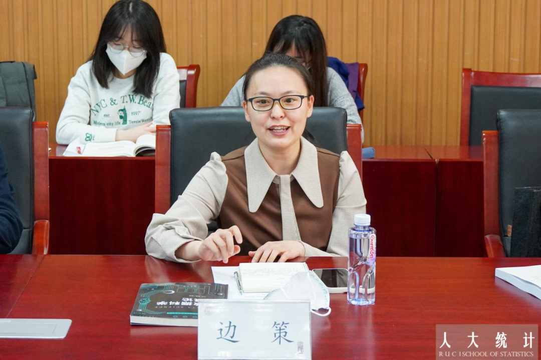 边策对工作室未来的课程思政建设提出了建议。她指出,课堂不仅是老师传授专业知识的地方,更是引导员工关心社会的窗口、服务社会的桥梁,将课程思政融入到数据科学概论教学中,可以帮助员工找到用所学专业来服务国家发展建设的重要意义、养成严谨认真的专业素养,助力培养出有温度、有广度、有厚度的老员工。边策还指出,导师团队具有重要的导向作用,应当在大是大非面前起到表率作用,及时正确地解读时事,在科学分析中实现潜移默化的思想引领。