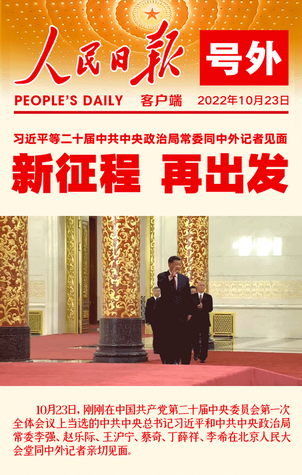 2022年10月22日,中国共产党二十次全国代表大会胜利闭幕,23日,二十届一中全会选举产生新一届中央政治局委员,新一届中央政治局常委与中外媒体见面。这是我党经过百年征程,在面对新的挑战和机遇,在新时代迈向新征程的重要一届领导集体,希望能够继续带领全党和全国各族人民砥砺奋进,不断前行。