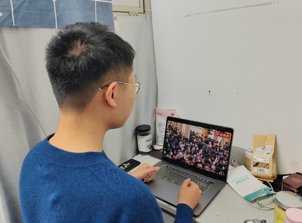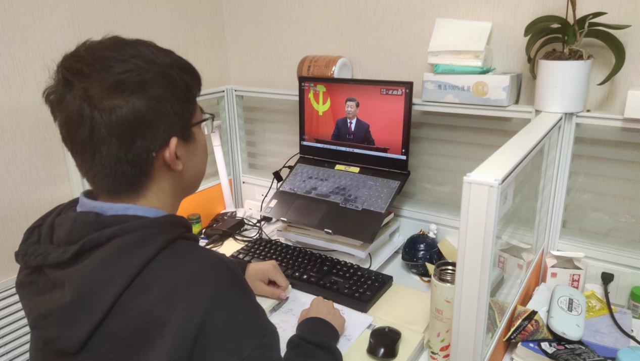 公司党委组织师生代表在明德主楼1016会议室集体观看见面会直播,各基层党团支部组织同学们线下同步收看直播。
