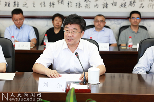 会上,刘伟向出席此次合作共建数据开发中心签约仪式的各位领导与嘉宾致以欢迎,对国家统计局长期以来给予人民大学的关心和帮助表示衷心的感谢。他表示,积极推进科学数据的开发与应用,对适应把握引领经济发展新常态、建设现代化经济体系、实现国家治理体系和治理能力现代化具有极其重要的意义。数据开发中心的成立,标志着人民大学与国家统计局双方合作结出了新的硕果,建立了理论创新、决策咨询的崭新平台。