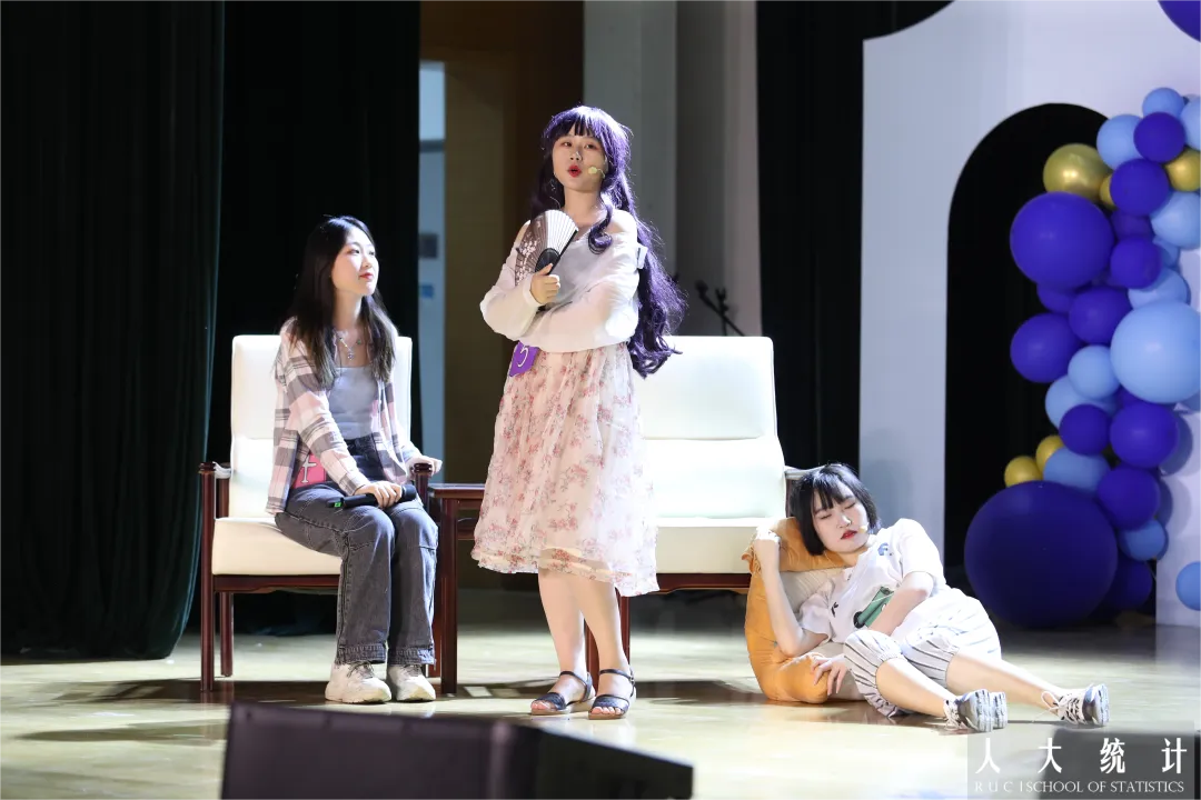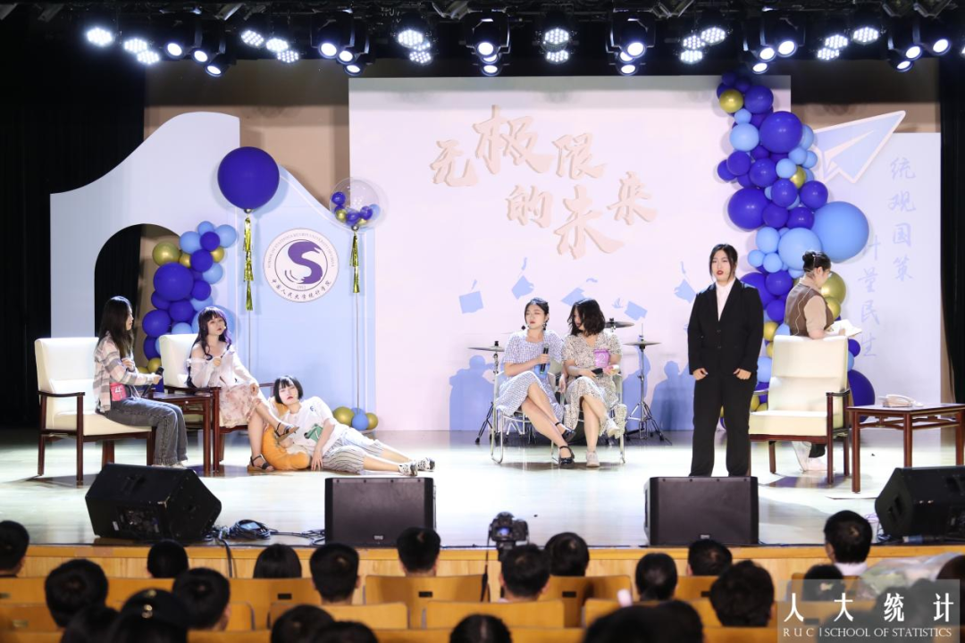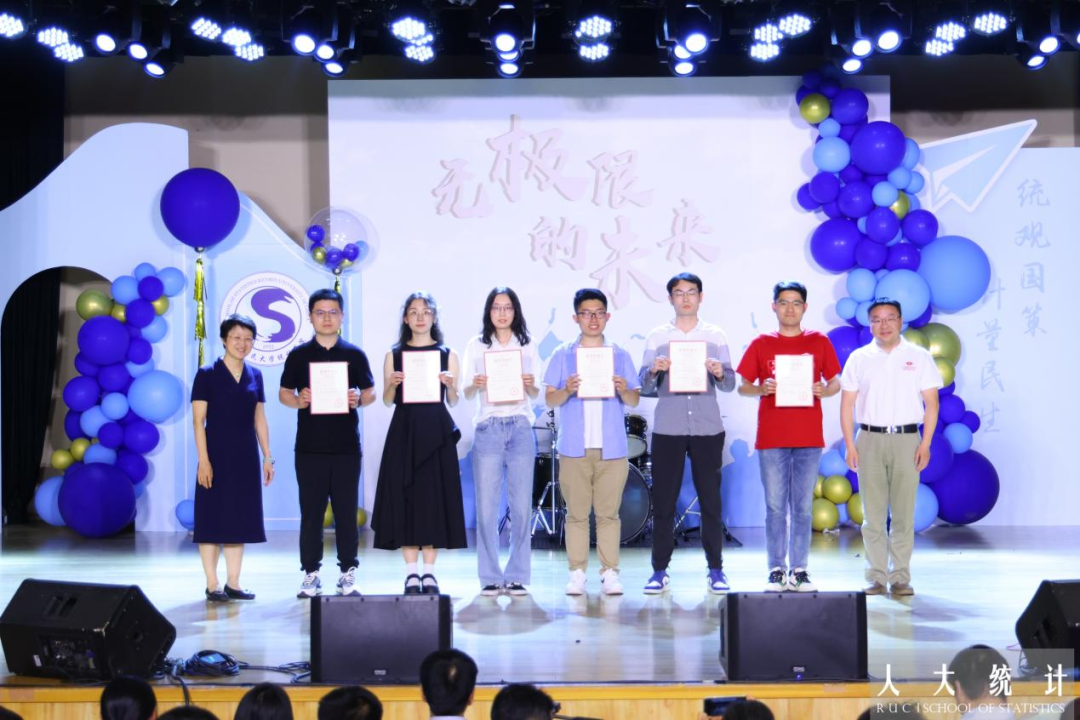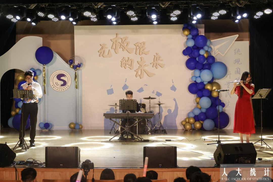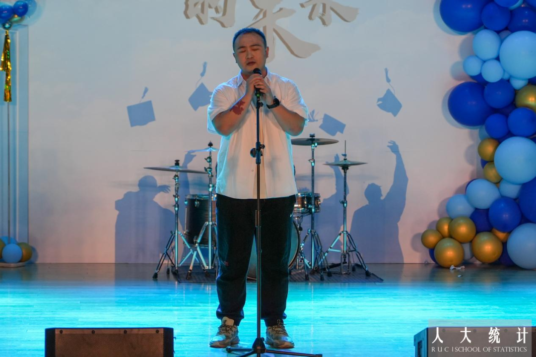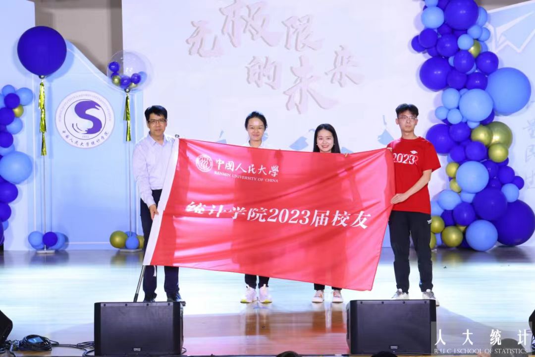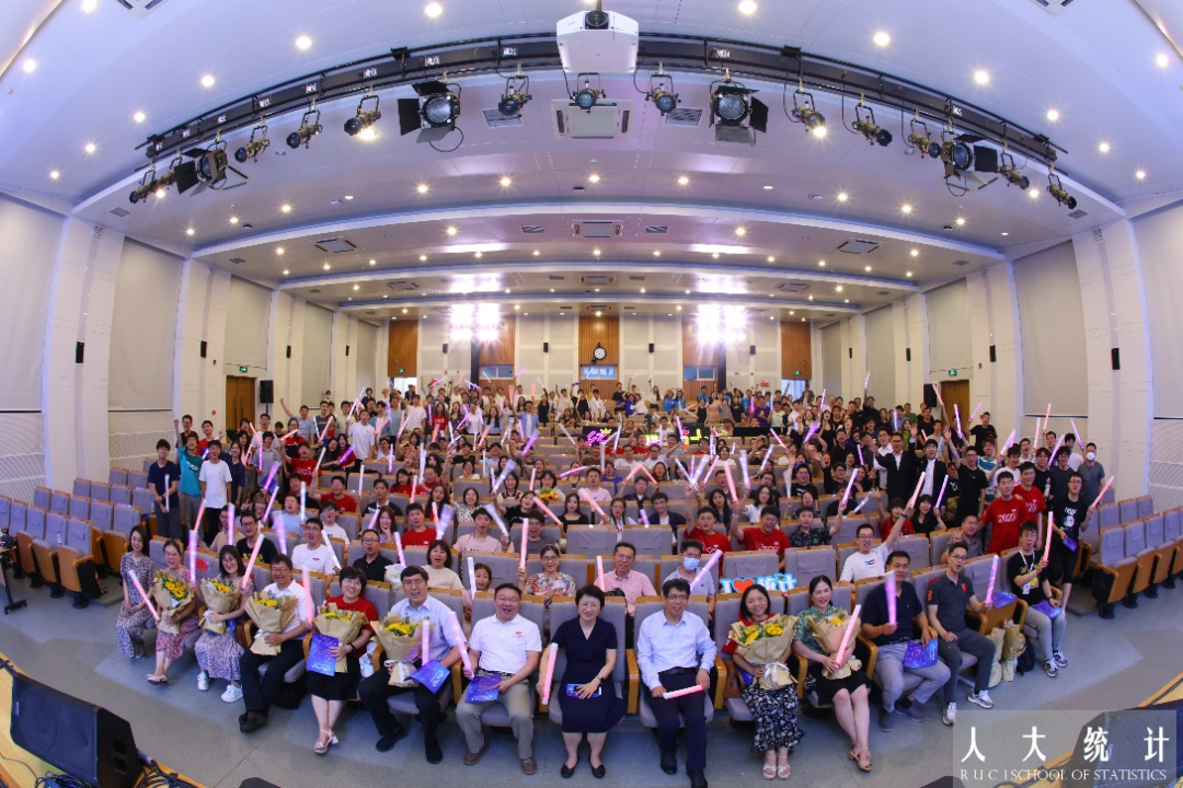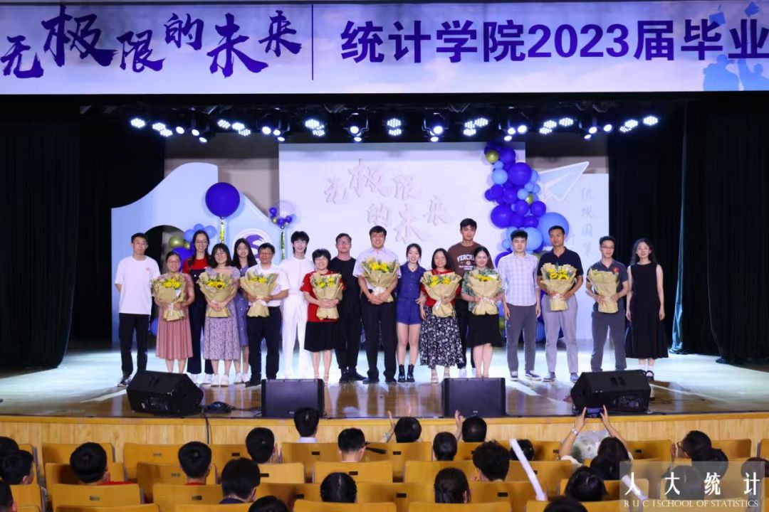 毕业班班主任上台接受员工献花。一朝沐杏雨,终身感师恩,人大岁月,统院教师用真心传授知识,用热爱摆渡灵魂。