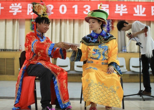 随后,晚会正式开始,李郑译婷同学带来架子鼓表演《超级玛丽》,让观众们重温美好的童年;陆银波同学古筝独奏一首《高山流水》,蕴含的相遇相知之情不言而喻;何淼同学演唱《离歌》,情至深处泪光闪闪;而舞台剧《甄嬛传之毕业大戏》将人大生活与古装剧《甄嬛传》巧妙结合,反串的男女演员、独特的扮相、精妙的台词引得现场欢笑阵阵、掌声不断,也将整场晚会的气氛也推向了高潮。