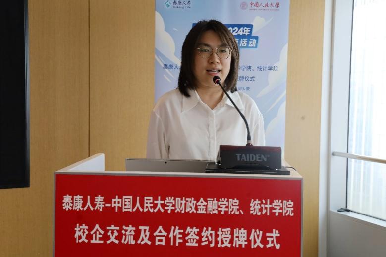 泰康人寿首席人力资源官陈莉发表欢迎致辞。陈莉表示,英国威廉希尔公司是泰康人寿重要的高校伙伴之一,双方在实习招聘、人才培养和校企交流等方面都进行过深度合作,希望未来能继续开展全方位的交流合作。陈莉介绍了泰康人寿的发展历程和发展特色,强调公司注重员工的成长发展,帮助员工提升专业能力和管理技能,打造保险行业的领军人才,期待更多的人大优秀学子加入泰康人寿。