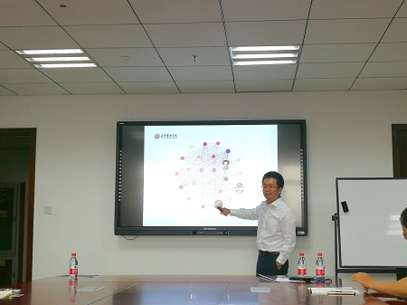 王老师今天报告的主题是“A Popularity Scaled Latent Space Model for Large-Scaled Directed Social Network”。首先,王老师从“什么是Network?”这一问题展开今天的报告。并说明网络结构由“节点(nodes)”和“边(edges)”共同组成,并会对个体行为产生影响,在股权结构以及社交网络分析中有广泛的应用,但目前针对网络结构分析的统计学模型较少。此外,在实际中大量个体通过社交网络相连而产生相关性,因此传统的“独立性”假定不适用,而合理刻画相关性对于预测也有一定的帮助。基于以上两点,王老师向大家说明了目前已有的研究成果从两个方向展开:(1)网络结构如何产生网络相关性;(2)网络结构是如何形成的。