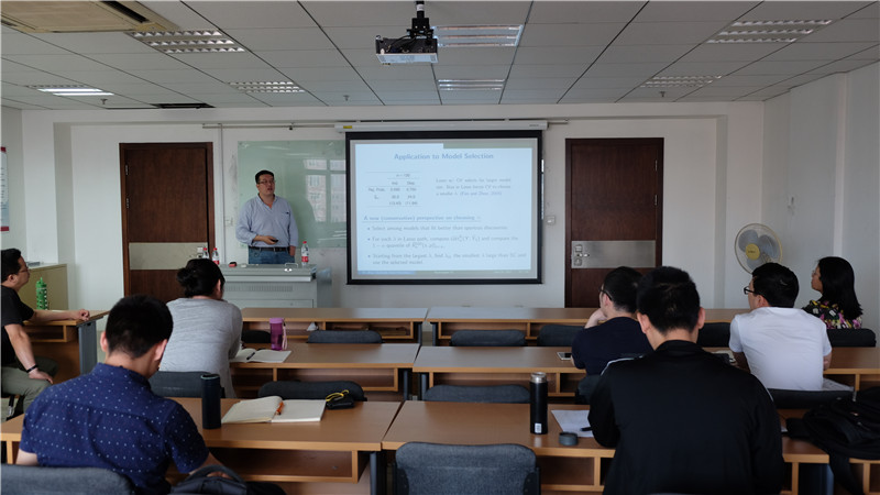 讲座开始后,周文教授从大数据背景引入,介绍了目前在各个领域所遇到的大数据问题。并提到在生物医学领域所提出的“Ome”(Genome,Exposome,Phenome)数据就是大数据的典型代表。周文教授提到,大数据的价值就在于可以进行统计推断,从而更好地帮助我们进行决策。而今天,周文教授所介绍的方法的背景,是基于全基因组序列WGS(whole genome sequence)中的少数信号探测问题所提出的。周教授提到,在大数据时代,数据的样本量和变量个数都相当巨大。于是,他想要研究,大数据至多能告诉我们多少信息?一个很重要的问题就是,当我们使用变量选择的方法在众多的变量中,选出变量之后,如何判断所选出的变量不是虚假的变量?