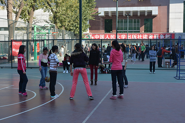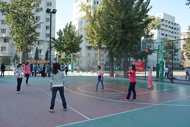 今天女排的出场阵容是2011级蔡思雨,2012级刘彤玥、吴双双、王文菁,2013级梁奇佳、梁钰。第一局比赛一开场公司女排就显示出较强的实力和扎实的基本功,队员们发球不断得分;对方偶尔一次发球成功也被我方队员用稳健的一传化解为本方得分。第一局比赛我队以25-6毫无悬念地拿下。
