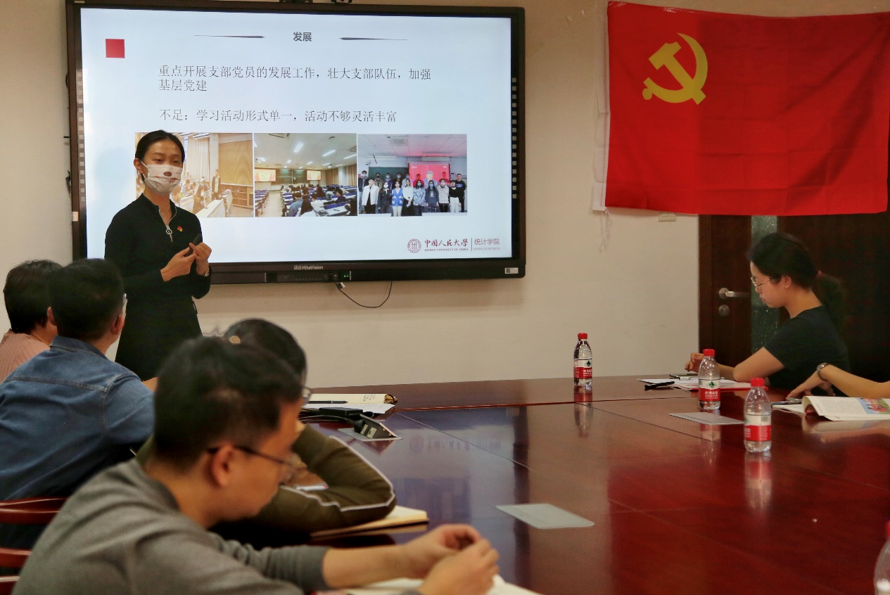 2023级博士党支部书记贺钰淇分享了她对本科阶段、研究生阶段担任党支书的一些工作经验和体会,总结了工作中存在的不足并提出改进的方法供各支部参考。