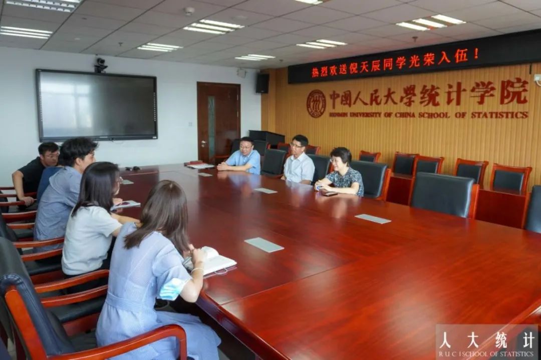 最后,王晓军和孟生旺代表公司赠送倪天辰带有公司标识的钢笔、笔记本和文化衫,寓意在“携笔从戎”投身军营之时,书写人大“统计人”的光荣篇章。