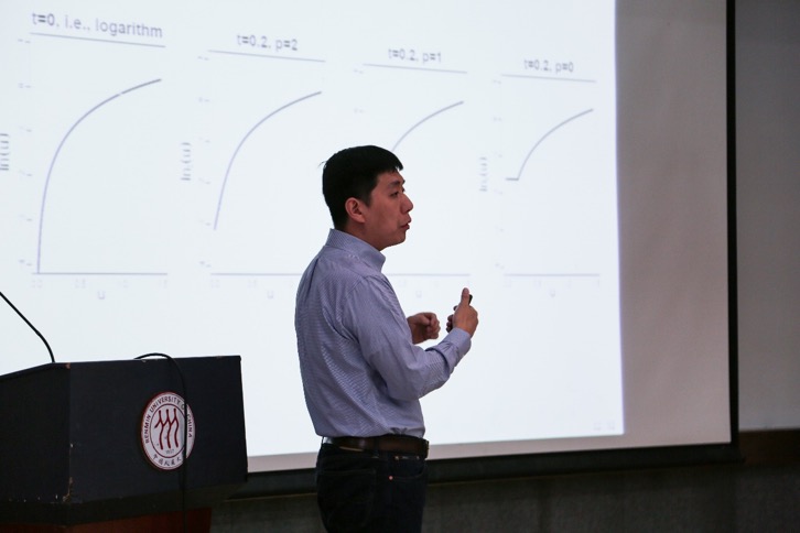 下午的会议首先由美国辛辛那提大学秦祎辰教授带来了题为Penalized Robustified Likelihood Estimation and Variable Selection的报告,他从违背模型假设的“污染数据”入手,提出了稳健估计的必要性,在此背景下介绍了最大切线似然估计的思想,阐述了如何利用泰勒展开的方法来进行具体的实现并讨论了提出的估计量的性质。