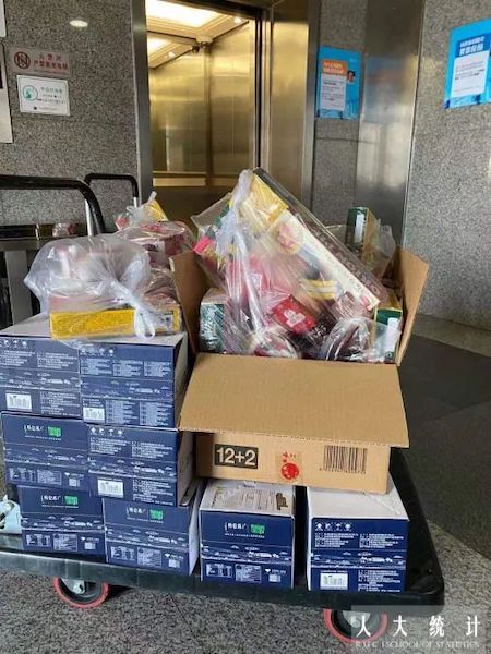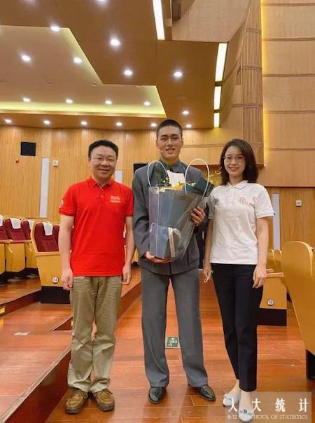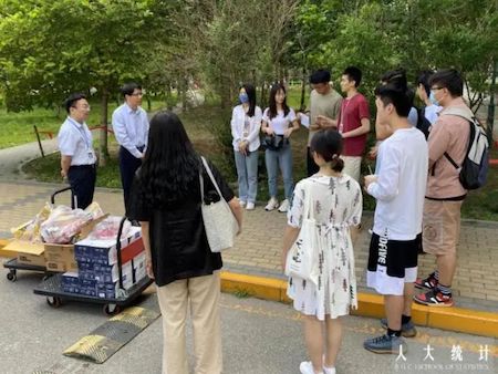 7月1日中午,统计公司党委书记孟生旺、副书记王志丹、专职辅导员迎接同学们凯旋