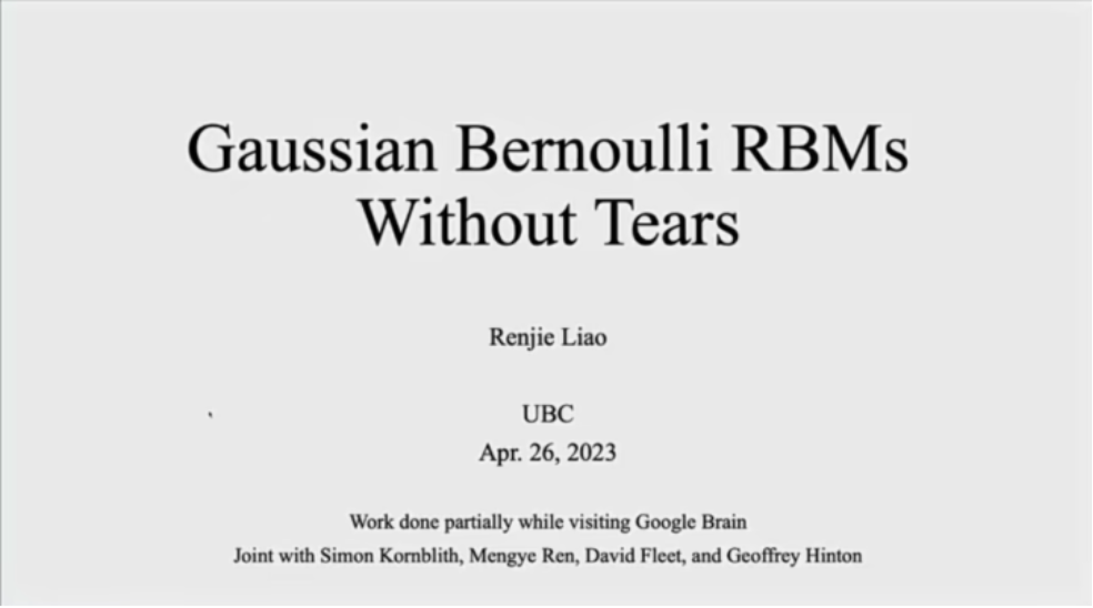 本次讲座邀请了不列颠哥伦比亚大学电气与计算机工程系助理教授Renjie Liao作题为“Gaussian-Bernoulli RBMs Without Tears”的报告。讲座采取线上形式,由英国威廉集团官网教授孙怡帆主持。