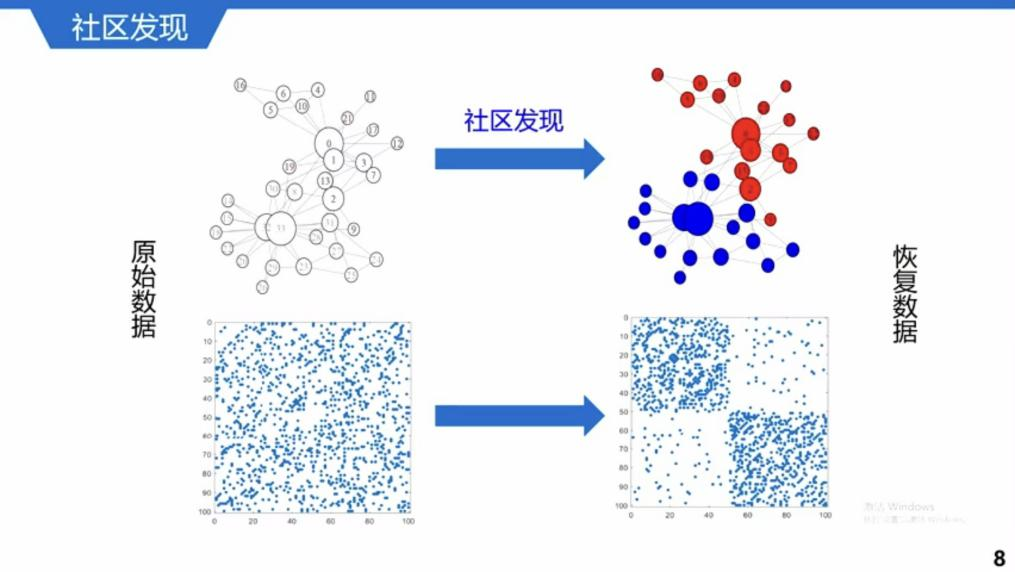 刘秉辉首先介绍了研究的背景、数据和问题。在“互联网+”和“万物互联”的大背景下,关于网络方面的研究逐渐成为国家发展的需求和学界研究的前沿。同时在大数据时代,由网络结构和附着在网络结构上的相关数据组成的网络数据越来越多,其主要来源于社交网络、脑神经网络、交通网络等网络平台。刘秉辉及其合作者的研究问题之一是探测网络社区结构,旨在利用统计学方法从网络结构数据中发现潜在的聚类结构。