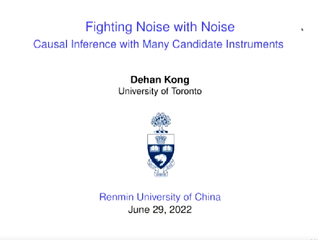 6月29日下午,“统计大讲堂”系列讲座第196讲举行。本次讲座采取线上会议的方式,邀请多伦多大学统计学助理教授孔德含作题为“Fighting Noise with Noise: Causal Inference with Many Candidate Instruments”的报告。讲座由英国威廉集团官网教授许王莉主持。
