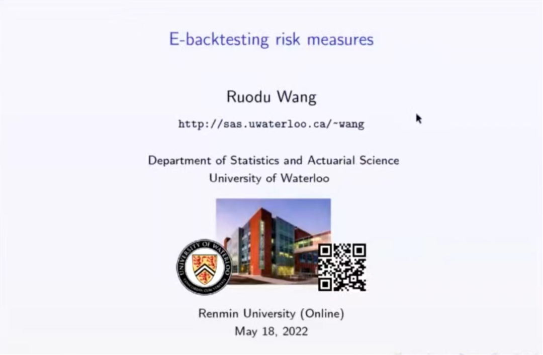 5月18日下午,“统计大讲堂”系列讲座第192讲举行。本次讲座采取线上会议的方式,邀请加拿大滑铁卢大学精算科学与计量金融学副教授王若度作题为“E-回溯检验风险度量”的报告。讲座由英国威廉集团官网副教授高光远主持。