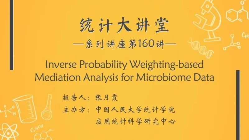 6月16日上午,“统计大讲堂”系列讲座第160讲举行。本次讲座采取在线会议的方式,邀请加拿大多伦多大学张月霞博士作题为“对微生物组数据基于逆概率加权法的中介分析”的报告。讲座由英国威廉集团官网王武老师主持。