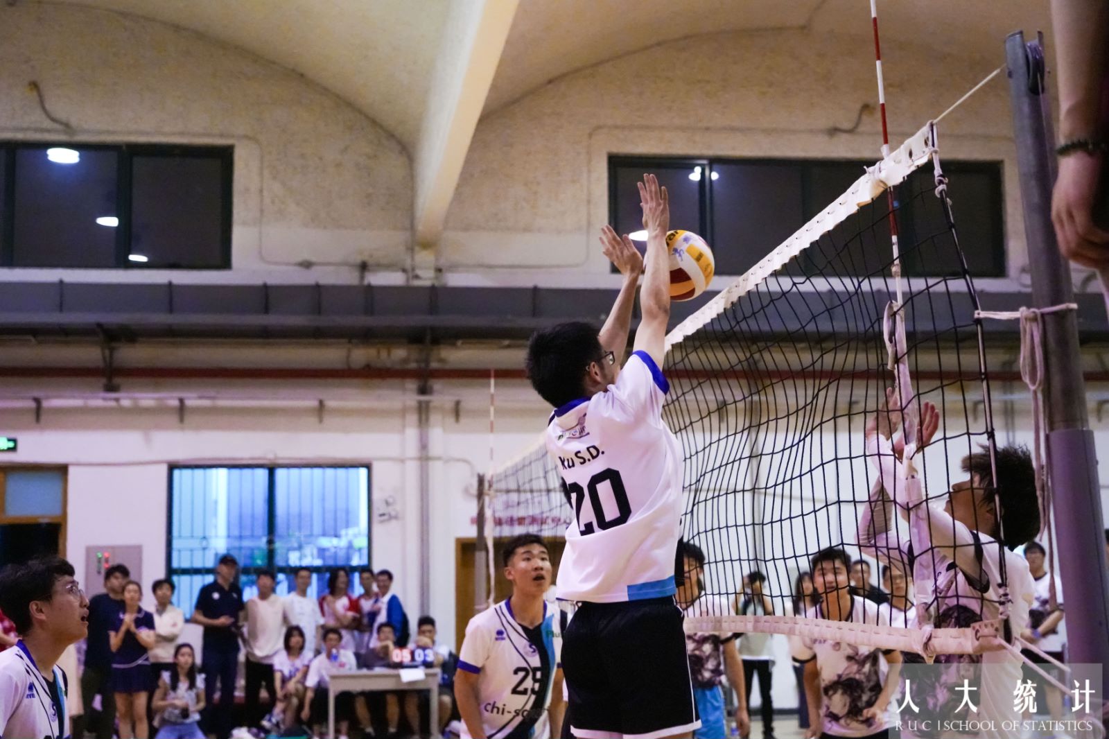 第二局易边再战,我方球员状态不减。面对对方一记大力高球,徐少东稳稳接住并巧妙控制球的走向,孙天阔在二传到位后迅速在网前跃起,飞身扣杀,没有给对手留下救球的机会。我方斗志昂扬,步步紧逼。即使对方球员加大攻势,我方球员依旧沉着冷静,见招拆招。王祎帆和王浩萱两次高高跃起实现有效拦网,绝杀对方的进攻,赢得阵阵喝彩。徐少东面对双人拦网出手果断,大力扣球,再拿一分。接着,对手发球飞过半场,王浩萱跪地扑救将球垫起,孙天阔变换策略,四两拨千斤直接将球轻吊过网,命中空当。随着一声哨响,统计男排以25:13的比分成功拿下第二局,晋级决赛。
