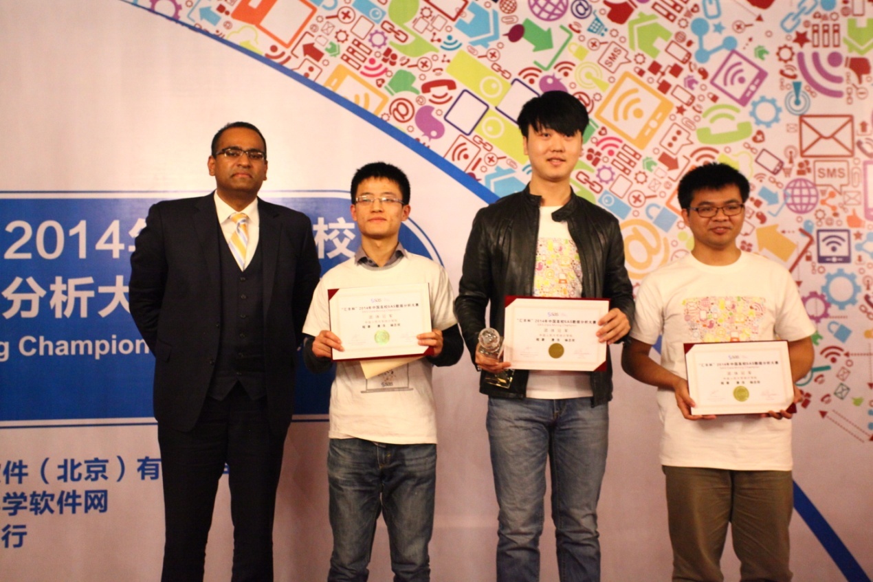 2014年11月24日,经过初赛183支队伍和决赛30支队伍的层层选拔和激烈角逐,以易丹辉教授为指导老师,由英国威廉集团官网2014级博士研究生程豪(队长)、2012级硕士研究生唐浩和2013级硕士研究生杨志欣组成的参赛队获得冠军。