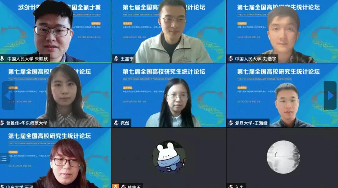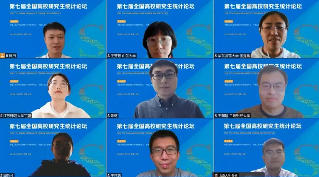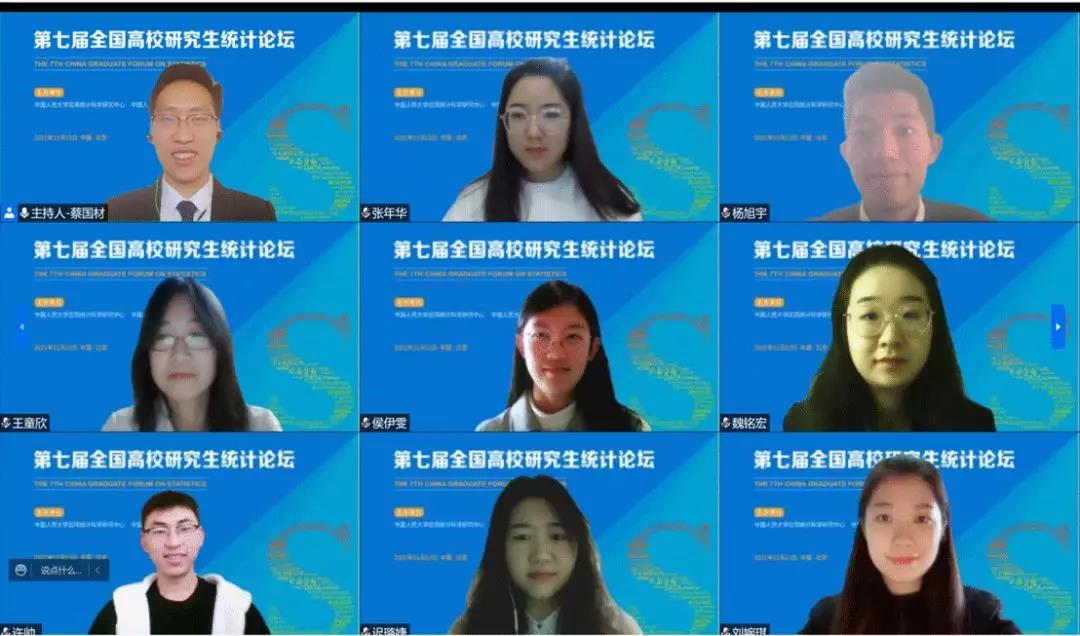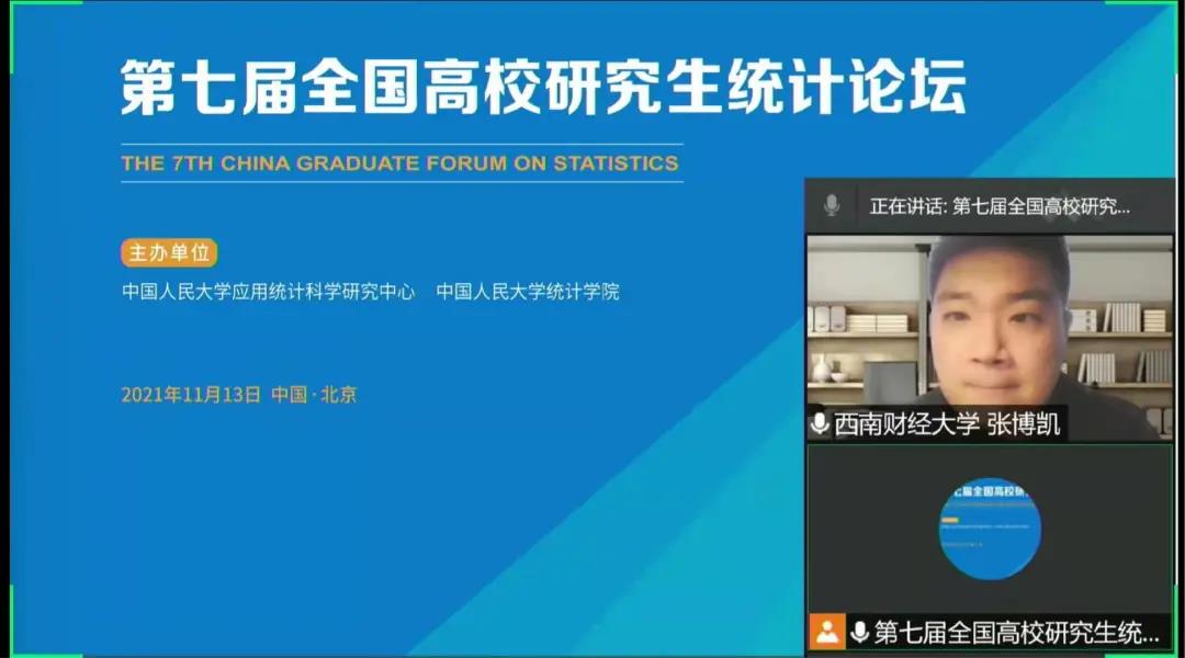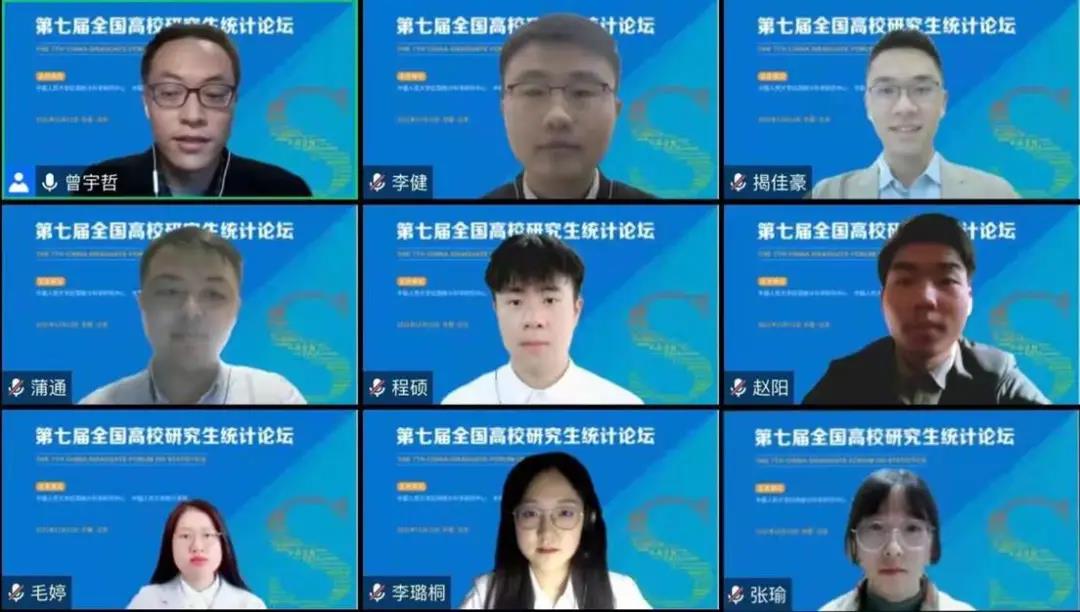 下午五个分论坛通过腾讯会议线上举办。经济社会统计、风险管理与精算、数理统计、生物统计与流行病学、数据科学与大数据统计五个分论坛的入选论文作者分别进行了报告。论坛通过线上报告的形式吸引了来自全国各高校的师生的参与,他们在线上同作者开展了深入的讨论,增进了学术交流与合作。