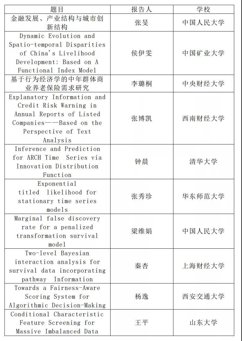 (附第七届全国高校研究生统计论坛“十佳论文”名单,排名不分先后)