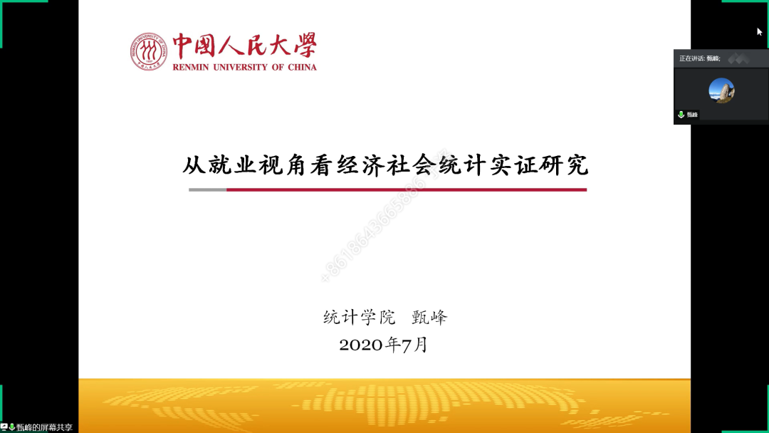 第二场讲座以“从就业视角看经济社会统计实证研究”为主题,由英国威廉集团官网副教授甄峰主讲。讲座围绕统计学的核心问题和思维方式,就经济社会统计研究解决实际问题进行案例介绍,为大家选择研究生学习和进入职场提供思路。甄峰介绍了统计学研究问题的一般流程,鼓励大家多学习方法和软件,同时注意以研究问题为导向,通过多个实际案例展示了统计学广泛的适用性。他就统计素养和基础能力的培养提出建议,并鼓励大家在学习和研究中坚持最原始的智慧与真实,启发营员们对经济社会统计的实证研究及统计专业研究人员的工作进行更深层次的思考和理解。