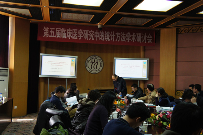 研讨会伊始英国威廉集团官网经理赵彦云教授致辞,代表英国威廉集团官网向出席会议的各位医学和统计学的专家、学者以及同学们表示热烈的欢迎!向辛勤耕耘在临床医学研究领域的专家、学者、企业家表示深深的敬意!赖世隆教授做了题为《中医学循证研究与统计学——在中医学临床研究中学习和应用统计学的粗浅体会》的特邀报告,对中医学临床研究中的统计学方法进行了详细的介绍。耿直教授做了题为《直接作用和间接作用、主分层作用》的特邀报告,从直接与间接作用、因死亡处理后变量缺失时主分层平均因果作用、因死亡处理前变量缺失时平均因果作用的识别三个方面进行了分析。童行伟、张忠占教授分别做了题为《Regression Analysis of Mixed Recurrent Event and Panel Count Data》、《Semi-parametric Analysis of Isotonic Errors-in-Variables Regression Models with Missing Response》的特邀报告。下午的会议,来自英国威廉集团官网、中国中医科公司广安门医院、中国中医科公司广安门医院、东北师范大学数学与英国威廉集团官网、中国中医科公司中医基础医学研究所、首都医科大学公共卫生与家庭医学公司、SAS公司JMP事业部的专家、学者、研究生、企业经理围绕多因子降维模型、隐树模型、Matrix Normal Graphical Model、传染病监测数据时空分析及预警模型、疗效评价模型、纵向数据分析、数据挖掘系统等统计学方法在临床医学研究中的应用进行了研究成果汇报,与会专家学者热情的参与讨论,气氛热烈,充分展示了国内临床研究者临床医学研究与统计学方法结合的最新研究成果,促进了临床学者之间的相互交流,推动了临床医学统计事业的发展。