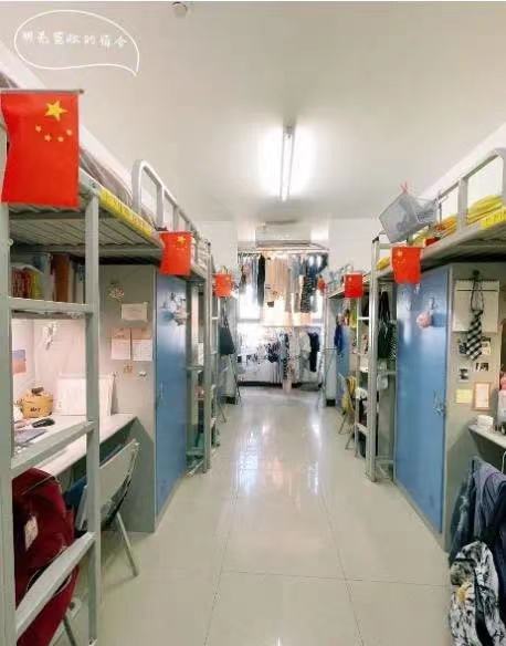 944寝室曾在“馨新相印,室在人为”宿舍美化大赛中获得三等奖。她们共同发挥想象力和创造力,紧扣庆祝建党百年的主题,对宿舍进行了美化装饰。宿舍成员时刻保持床铺的洁净,每个人床边插上的小红旗为寝室营造了一种积极而又不失活泼的气氛。