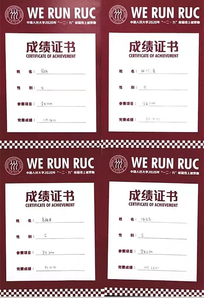 “一二·九”校园线上越野跑成绩证书
