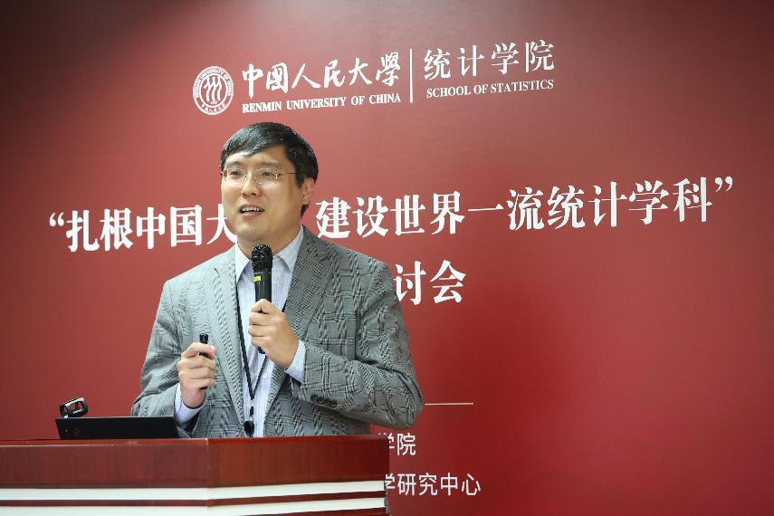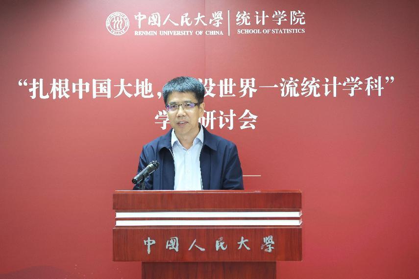 中国科公司大学经济与管理公司经理、发展中国家科公司(TWAS)院士洪永淼回顾了其八十年代在人民大学的学习经历及与人民大学的历史渊源。就统计学科自主知识体系构建问题,他提出应当以中国现实问题为导向创新统计学理论,创新人才培养体系、评价体系,体现学科的民族性、时代性、专业性,同时要密切关注国际统计学界的重要发展趋势,通过开放的国际交流,将学科自主性与国际接轨。就课程思政建设,他充分肯定了《数据科学概论》团队的建设成效,他表示统计学作为方法论学科,要强调对员工科学精神的培养,建立正确的世界观,在解决中国问题当中彰显中国元素、彰显民族自信。