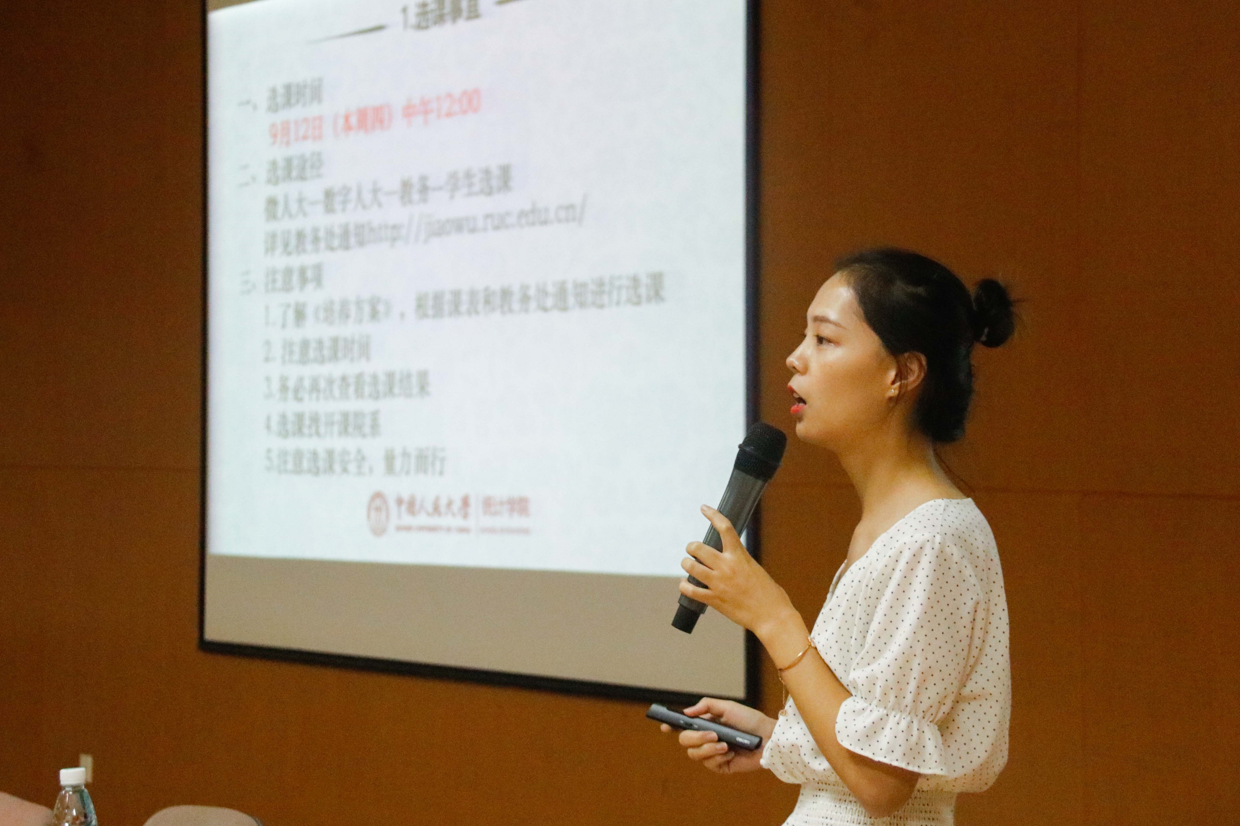 讲座后,本科教务秘书党之玉向新生们介绍了专业概况和开学重要事宜,并对一些常见问题做出解答。她祝福同学们在未来的学习生活中收获知识和友谊,在新的征程上一帆风顺,实现梦想。