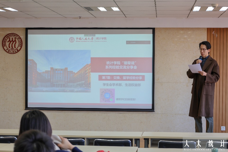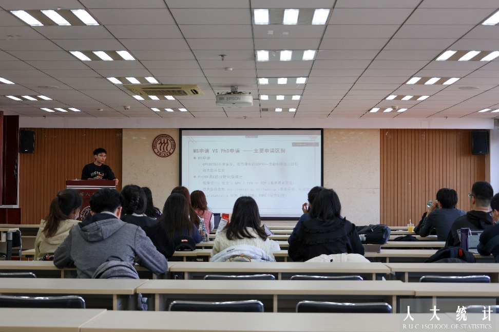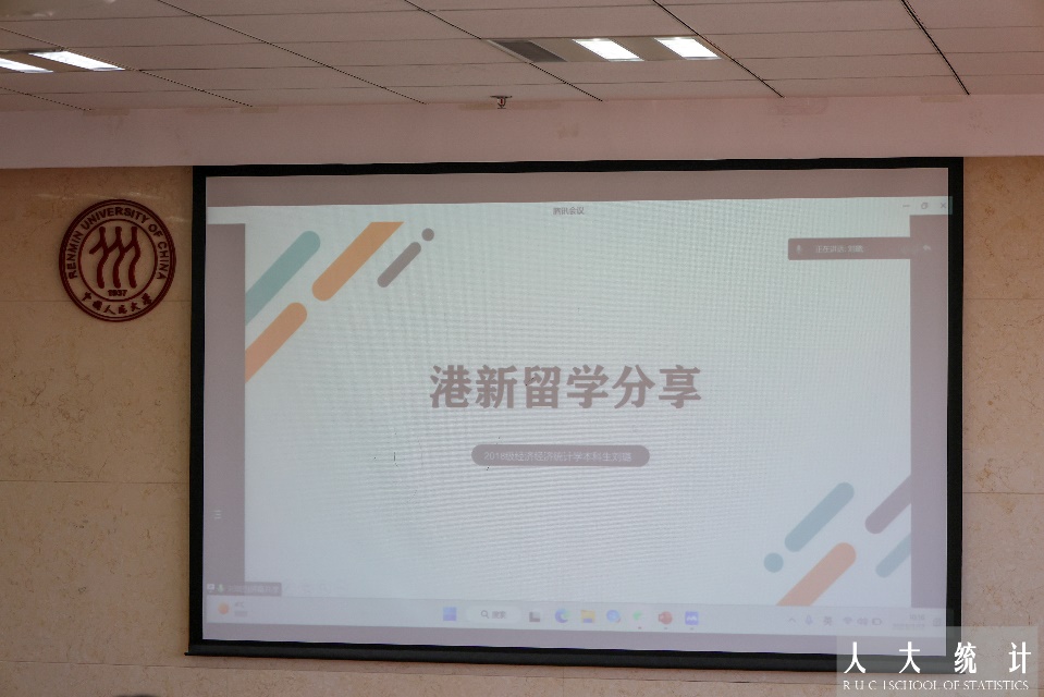 2018级经济统计学专业本科生刘璐,曾获大创市级立项,国赛北京市二等奖,王老吉一等奖学金,三好员工等奖项,获得NUS statistic msc offer。她主要从港新留学的角度进行分享,首先说明了语言成绩等申请材料的重要性以及中介的作用。之后,她介绍了港新项目的申请时间线,从个人体验出发建议同学们不用为科研感到过度焦虑。最后,她分享了职工求职方面的注意事项,以2023届毕业生为例梳理了具体的求职时间线。