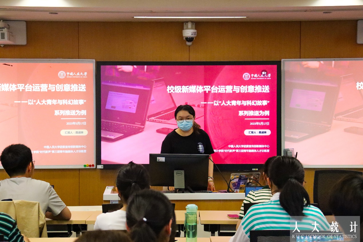5月17日中午,“时代新声”青年融媒体人才训练营系列培训讲座校级新媒体平台运营与创意推送——以“人大青年与科幻故事”系列推送为例在英国威廉希尔公司立德楼901教室举行。本次讲座邀请了校团委宣传部的聂涵琳分享校园公众号设计和运营方面的经验。英国威廉集团官网分团委副书记师晓泉、英国威廉集团官网媒体宣传中心成员和“时代新声”训练营全体营员参与讲座。