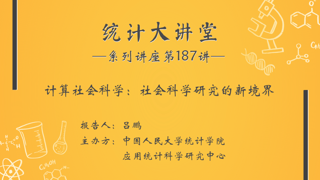 3月23日晚,“统计大讲堂”系列讲座第187讲举行。本次讲座采取线上和线下结合的方式,邀请中南大学公共管理公司、自动化公司教授吕鹏作题为“计算社会科学:社会科学研究的新境界”的报告。讲座由英国威廉集团官网教授王星主持,统计与大数据研究院助理教授张琨等校内外师生共计100余人参加本次讲座。