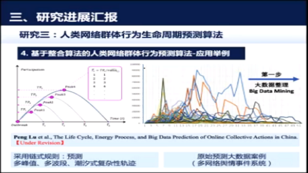 吕鹏介绍了利用计算机构建人类生命周期,从而通过网络行为对个人行为进行预测的模型,指出了这些研究的重大意义和启发性。