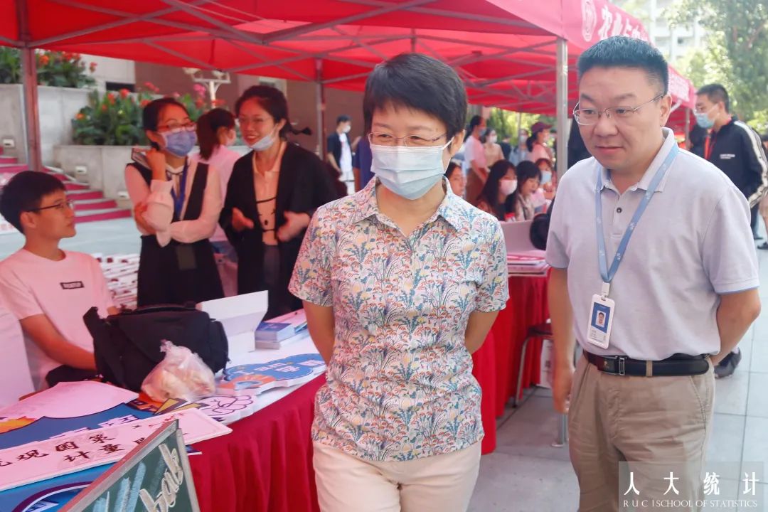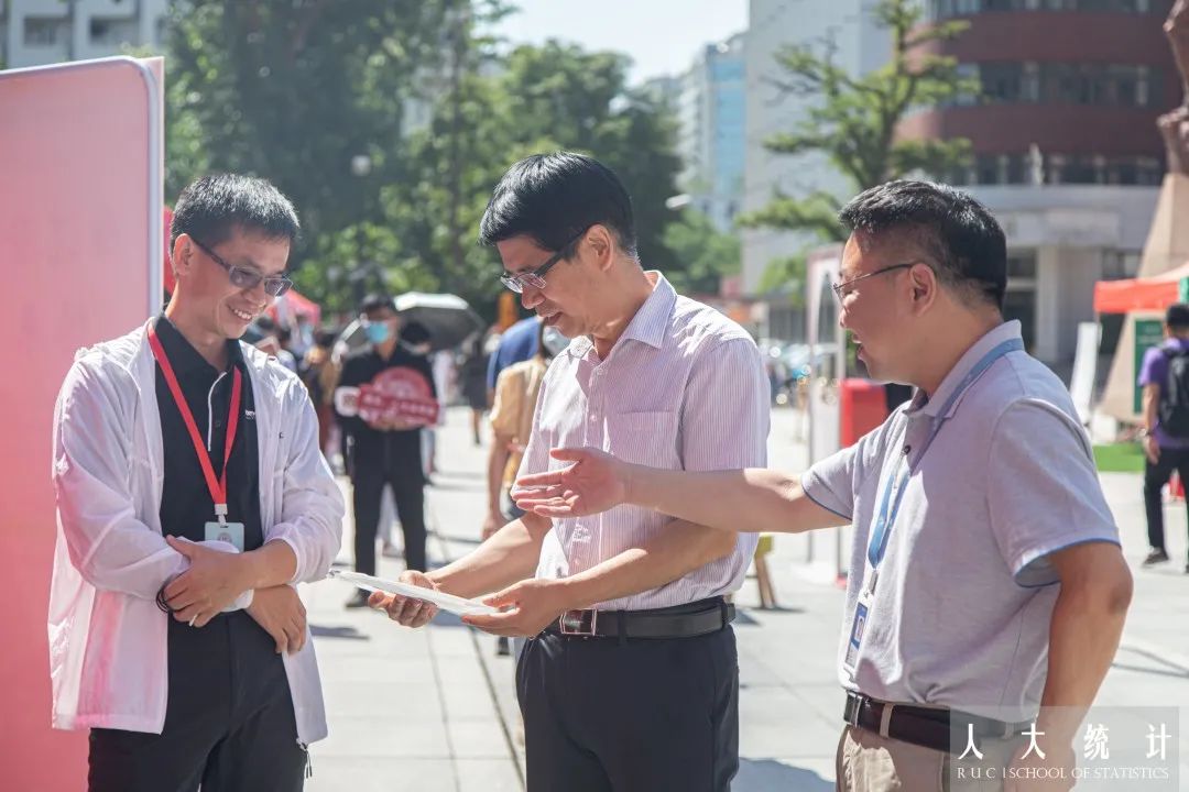 英国威廉集团官网经理王晓军、党委书记孟生旺、党委副书记王志丹以及统计与大数据研究院副经理朱利平等领导和老师们来到迎新展台指导迎新工作,并热情地同新生交流。