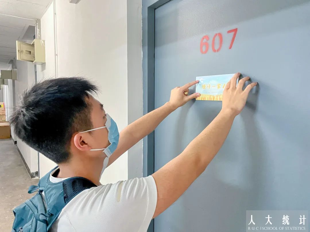提前在新生寝室门上贴好门牌,“统计一家人”字样和田野元素寓意欢迎新生们加入统计大家庭,开启充满活力与希望的新征程。