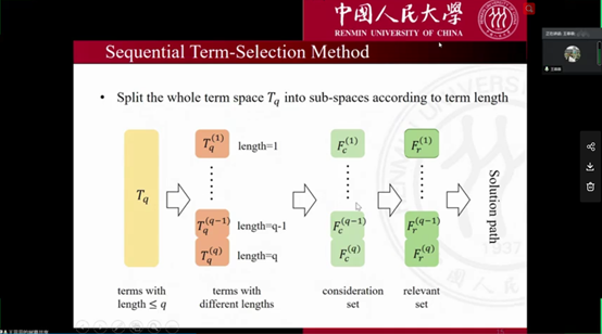 王菲菲首先介绍了课题背景。随着文本在互联网中的大范围增长以及深度学习和人工智能的发展,文本分析在实际生活的应用趋于成熟。此次研究即关注文本对连续性的应变量的解释,这种方法在电商平台、新闻自媒体、社交网络和互联网广告中都有广泛应用的前景。她利用“词”、“词组”和“词典”的概念阐述了文本的结构化。传统的文本结构化方法忽略了词与词之间的顺序关系,而这种缺陷可以用“词组”来弥补。她提到,虽然已经有许多涉及同类型变量筛选的优秀成果,但都没有在特定文本场合下提出,没有考虑到文本自身的特点。
