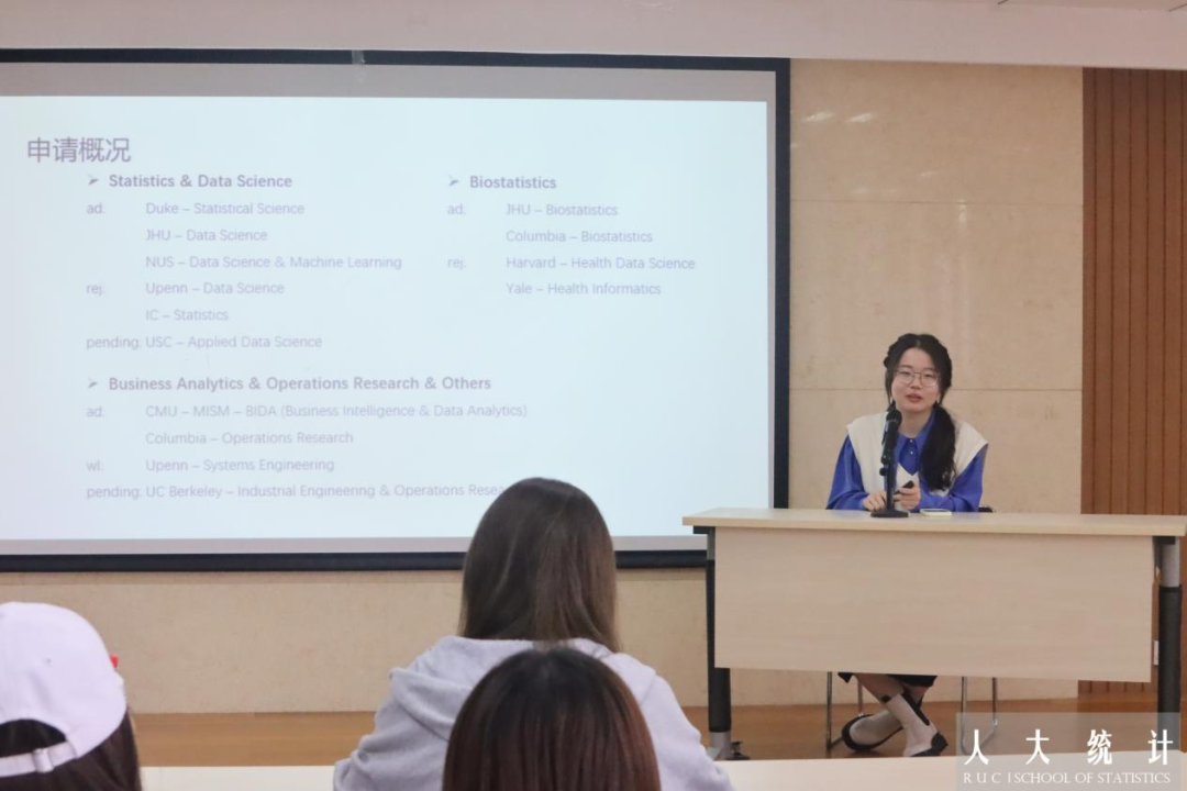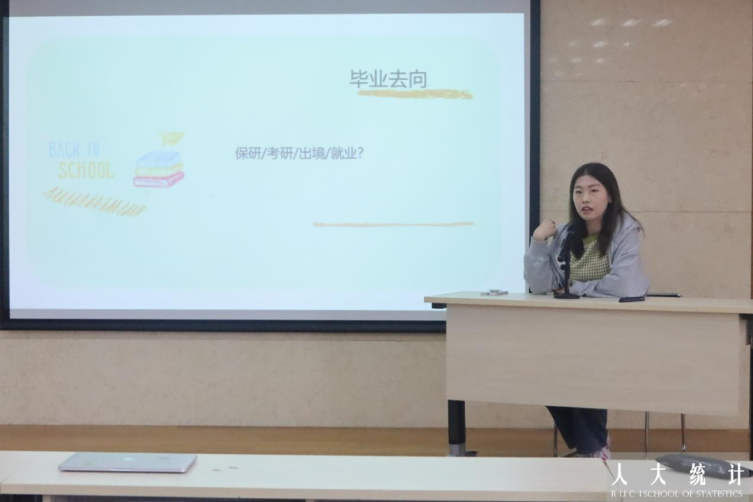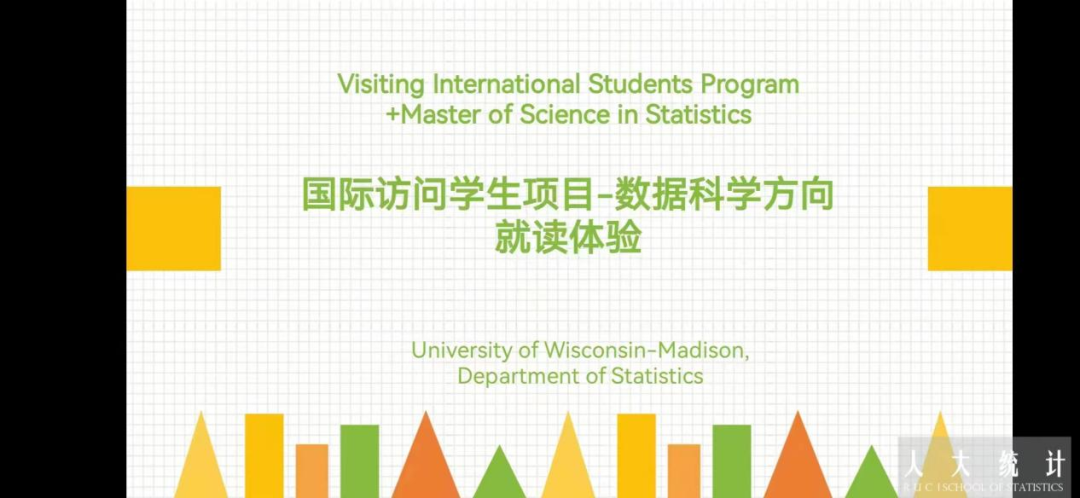 2018级经济统计专业本科生马开颜,2021-2022学年赴美就读威斯康星大学麦迪逊分校VISP-MSDS交换项目,交换期间GPA4.0,并获得所在高校offer。马开颜结合个人经历,向同学们分享和展示了境外学习和生活的亲身感受,并就同学们关注的关于境外生活的问题进行了详细的解答。此外她还提到,为了更好地应对节奏相对较快的境外学习,前期做好充足的准备至关重要,建议尽早准备好语言考试。同时,夯实基础知识、培养必要的独立生活技能同样不可或缺。